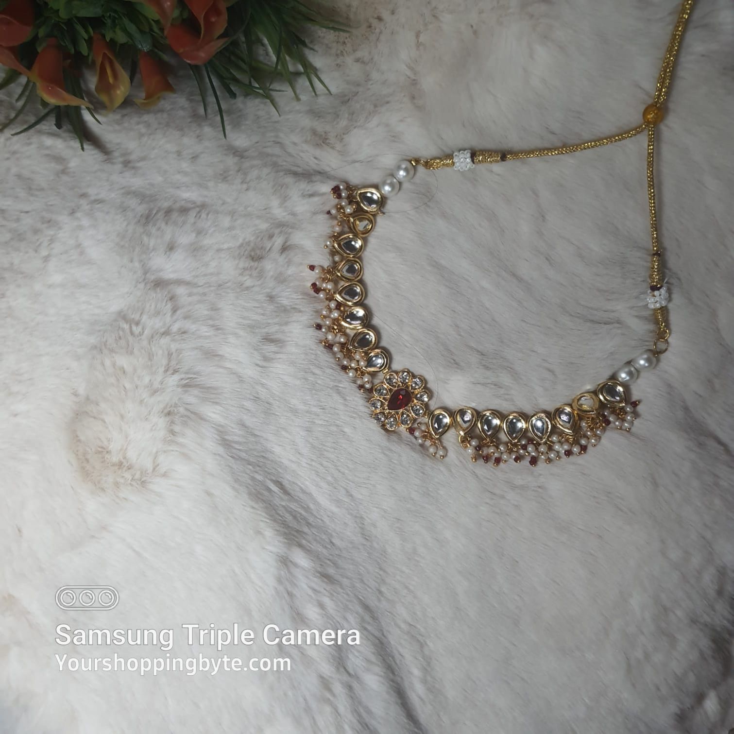 ACCESSHER Gold Plated Traditional Kundan Embellished Statement Choker Necklace Set with Stud Earrings and Adjustable Dori for Women and Girls Pack of 1