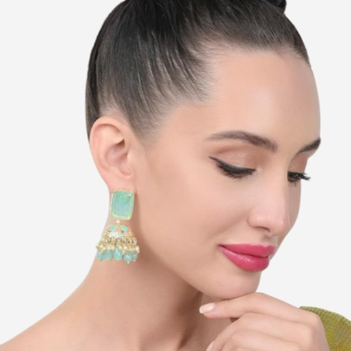 Zaveri Pearls Turquoise Peach Meenakari Cluster Beads Drop Jhumki Earring For Women