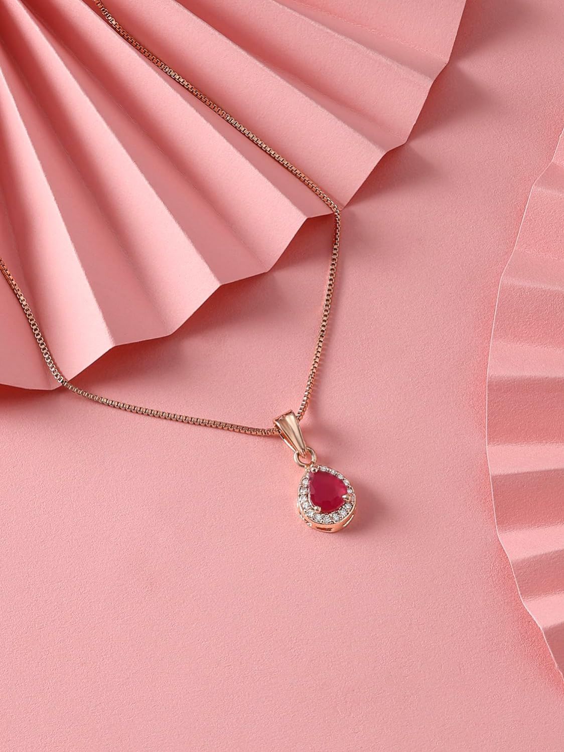 ZAVERI PEARLS Pink Rose Gold Contemporary Cubic Zirconia Pearl Embellished Pendant & Chain For Women