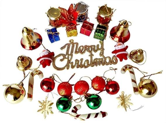 (Balls, Bells, Gifts, Pine Trees, Stars, Candy Sticks & Santa Claus) Christmas Gift Items, Christmas Tree Decorations Items (19)