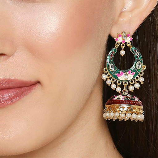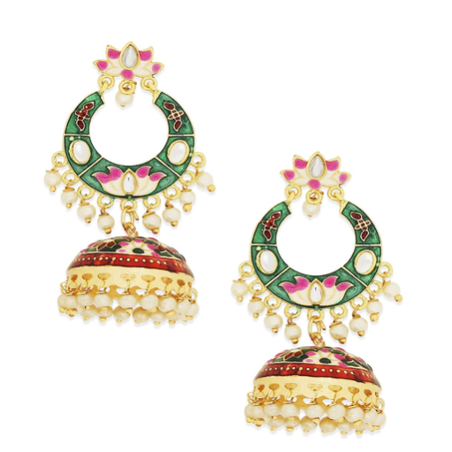 Jewellery Meenakari Enamel Floral Ethnic Chandbali Jhumka/Jhumki Earrings for Women & Girls