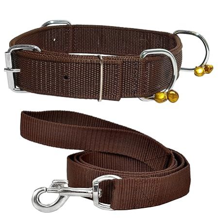 Stylish Nylon Leash Belts with Bell - Labrador, Golden Retriever,(Large, Brown)