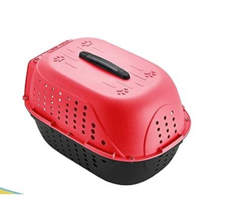 Pet Basket Plastic Handle Hinged Door Folding Collapsible Transport Box Crate Cage for Puppy Cats, Dimensions : 48 x 32 x 30 cm - Red