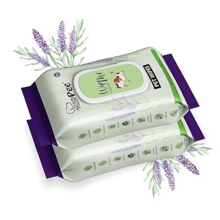 100% Biodegradable 96 Count (Pack of 2) Wet Wipes for All Pets | Lavender Essential, Vitamin E & Olive Oil | Anti-Bacterial | Cleansing, Deodorising & Grooming Wipes
