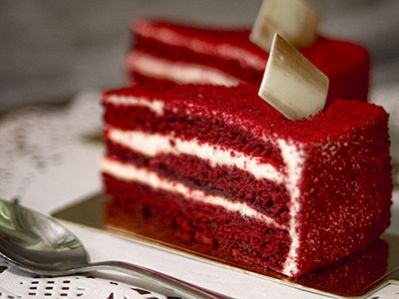CLASSIC RED VELVET CAKE LAYERED WITH CREAM CHEESE FROSTING.