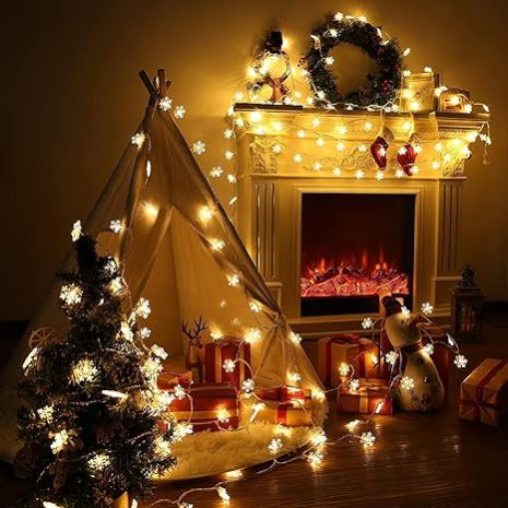 14 LED Snow Flake Fairy Lights Waterproof Indoor Outdoor for Home Decoration (Warm White)10 Feet