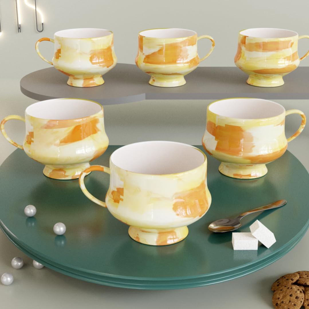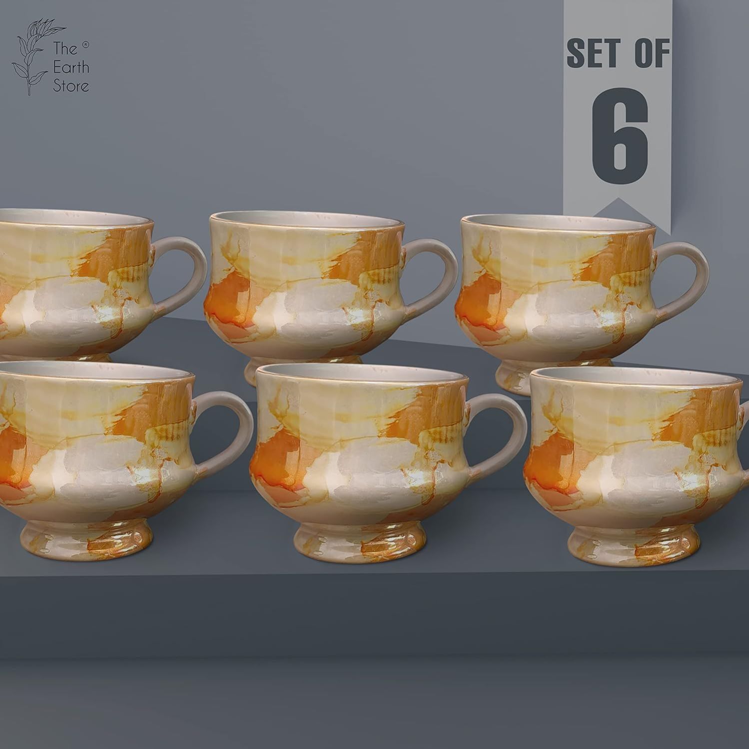 The Earth Store Handcrafted Ceramic Flicker Zest Microwave Safe Chai/Tea Cups Serving Tea Cups Set of 6 Ideal for Friends, Anniversary, Birthday