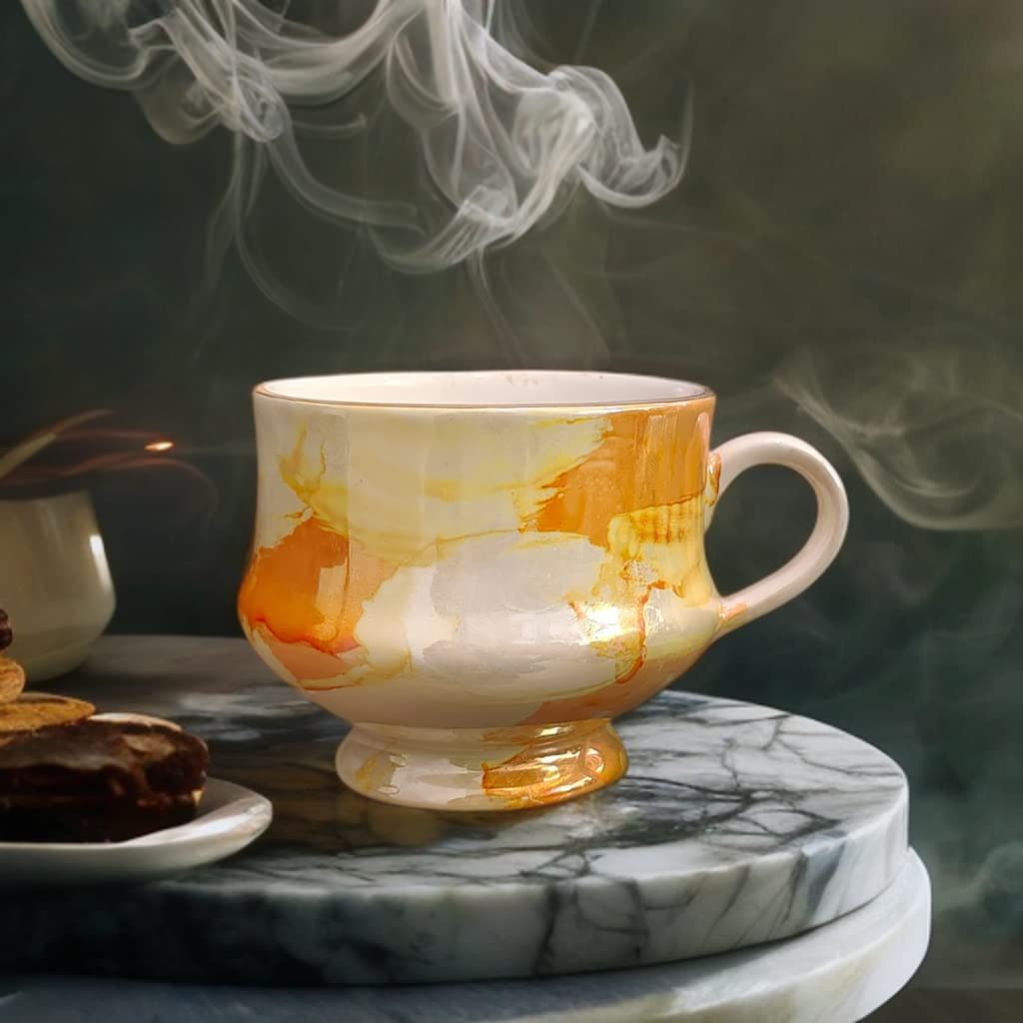 The Earth Store Handcrafted Ceramic Flicker Zest Microwave Safe Chai/Tea Cups