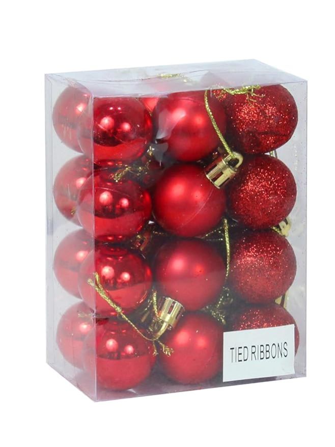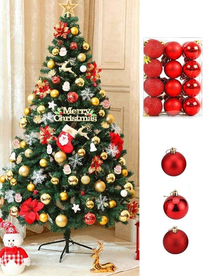 Pack of 24 Christmas Tree Decoration Items Balls Ornaments Hanging Props Xmas Accessories (Plastic, Red, 3.8 cm) - Christmas Decorations Items for Home Decor Office Church