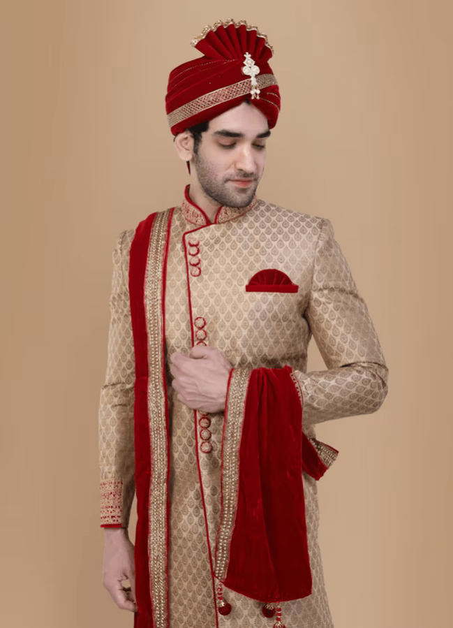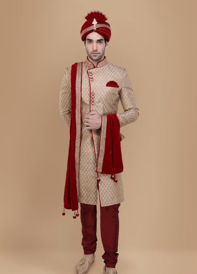Traditional Beige Sherwani Suit