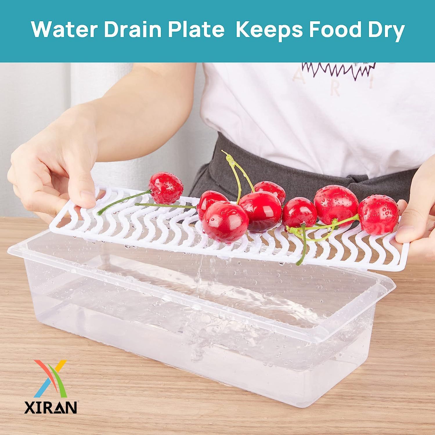 Xiran 6 Fridge Storage Boxes Fridge Organizer with Removable Drain Plate and Lid Stackable Fridge Storage Containers Plastic Freezer Storage Containers for Fish, Meat, Vegetables, Fruits(1500ML)